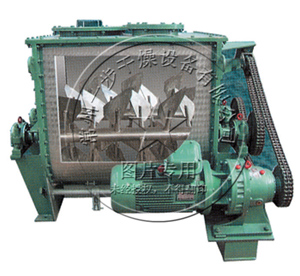 本系列混合机以强烈、有效混合为特点、卧式筒体内两根搅拌等速反向旋转,轴上特殊布置的桨叶确保物料径向、环向、轴向三向运动,形成复合循环,在极短的时间内达到均匀混合